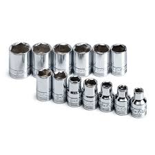 3/8-Inch Drive Shallow 6-Point Metric Socket Set. Constructed of durable heavy-duty chrome vanadium steel, these sockets have the strength required for high torque jobs and will fit onto any 3/8-inch drive ratchet, torque wrench, extension bar, or adapter. The sockets all feature a rust and corrosion resistant high polish chrome finish that not only looks good but is easy to wipe clean of dirt, oil, and grime.